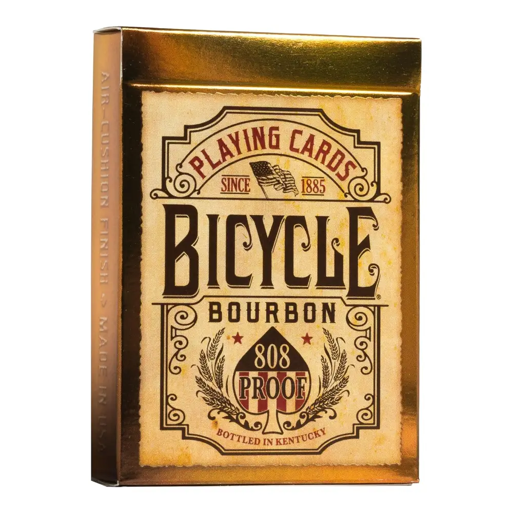 La Bicycle Bourbon es una baraja que respira carácter y estilo. Inspirada en la estética del bourbon, sus dorsos y caras presentan tonos cálidos, detalles ornamentales y un aire clásico que la convierte en una pieza muy especial dentro de cualquier colección de naipes.