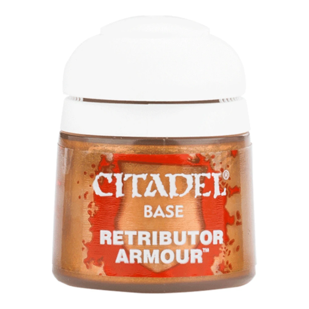 El Retributor Armour es el dorado base por excelencia de Citadel: un color intenso y rico que convierte cualquier armadura, filigrana o icono imperial en una auténtica joya. Ideal para los Adeptus Custodes, Adepta Sororitas y cualquier detalle que quieras resaltar con oro.
