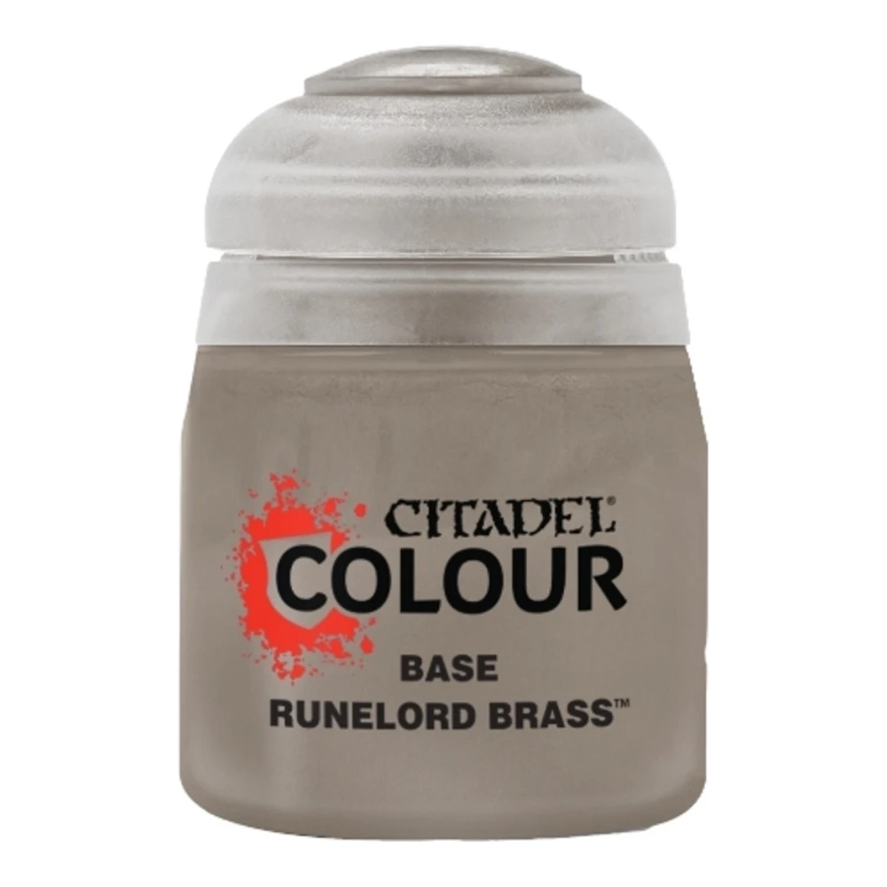 Citadel Base Runelord Brass es una pintura metálica de tono latón envejecido, ideal para detalles ornamentales, maquinaria antigua o armaduras rúnicas. Su excelente cobertura permite aplicarla como base sólida para esquemas con aspecto desgastado o arcano.