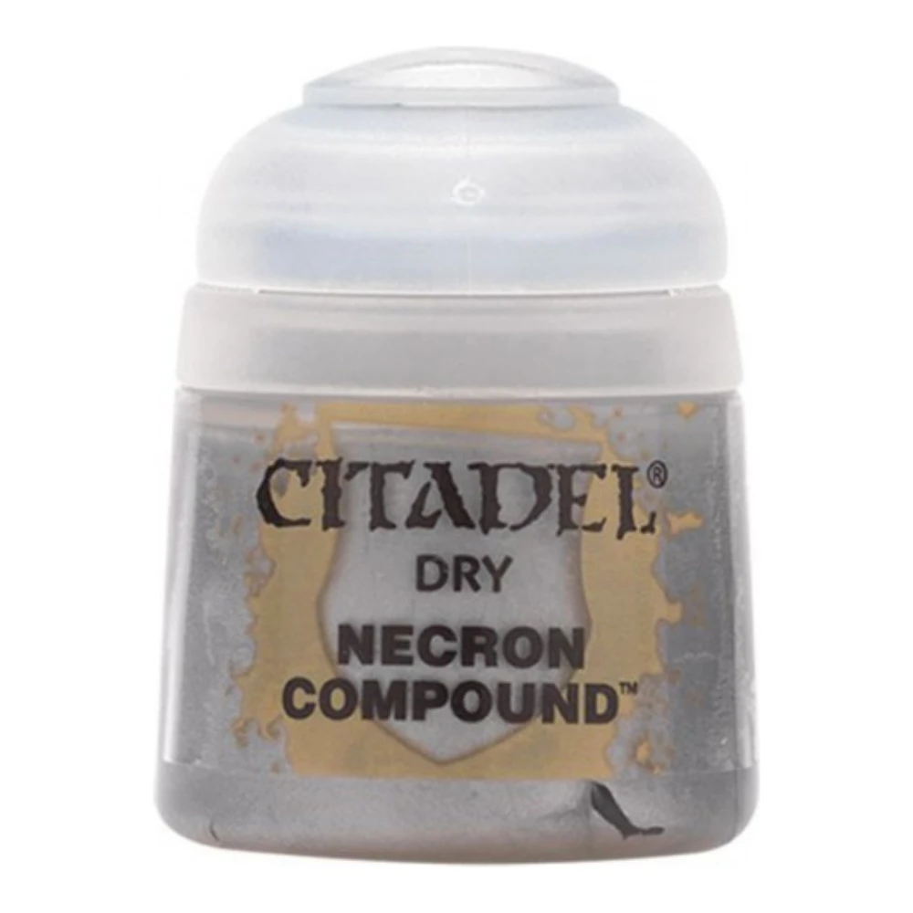 Necron Compound es una pintura Dry de tono plateado claro con acabado metálico, formulada específicamente para la técnica de pincel seco. Ideal para resaltar bordes y texturas en armaduras metálicas, estructuras mecánicas o cráneos cibernéticos, ofrece un acabado brillante y envejecido que aporta definición y realismo, especialmente en ejércitos como los Necrones.
