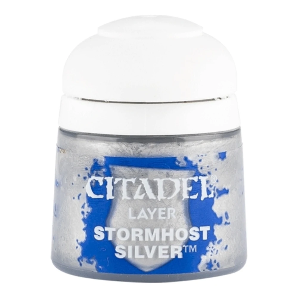 Stormhost Silver es una pintura Layer de plata muy brillante, ideal para aplicar luces extremas sobre metales base como Ironbreaker o Leadbelcher. Perfecta para resaltar bordes de armaduras, armas y detalles metálicos, proporciona un acabado luminoso y pulido que da un aspecto limpio y definido a cualquier miniatura con componentes metálicos.