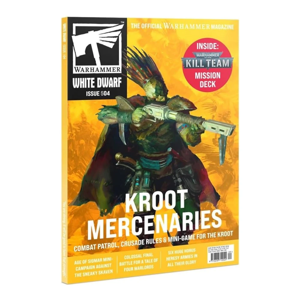 Este número de la revista oficial de juegos de miniaturas incluye reglas para la facción de los Kroot en formato Combat Patrol, misiones de “Predators & Prey” para Crusade, contenido para Warhammer Age of Sigmar como la campaña Flashpoint Moulderhunt, y novedades para otros formatos y sistemas. Es perfecta tanto para jugadores que buscan nuevas tácticas como para pintores que necesitan inspiración visual y para coleccionistas que quieren estar al día con lo último del hobby.