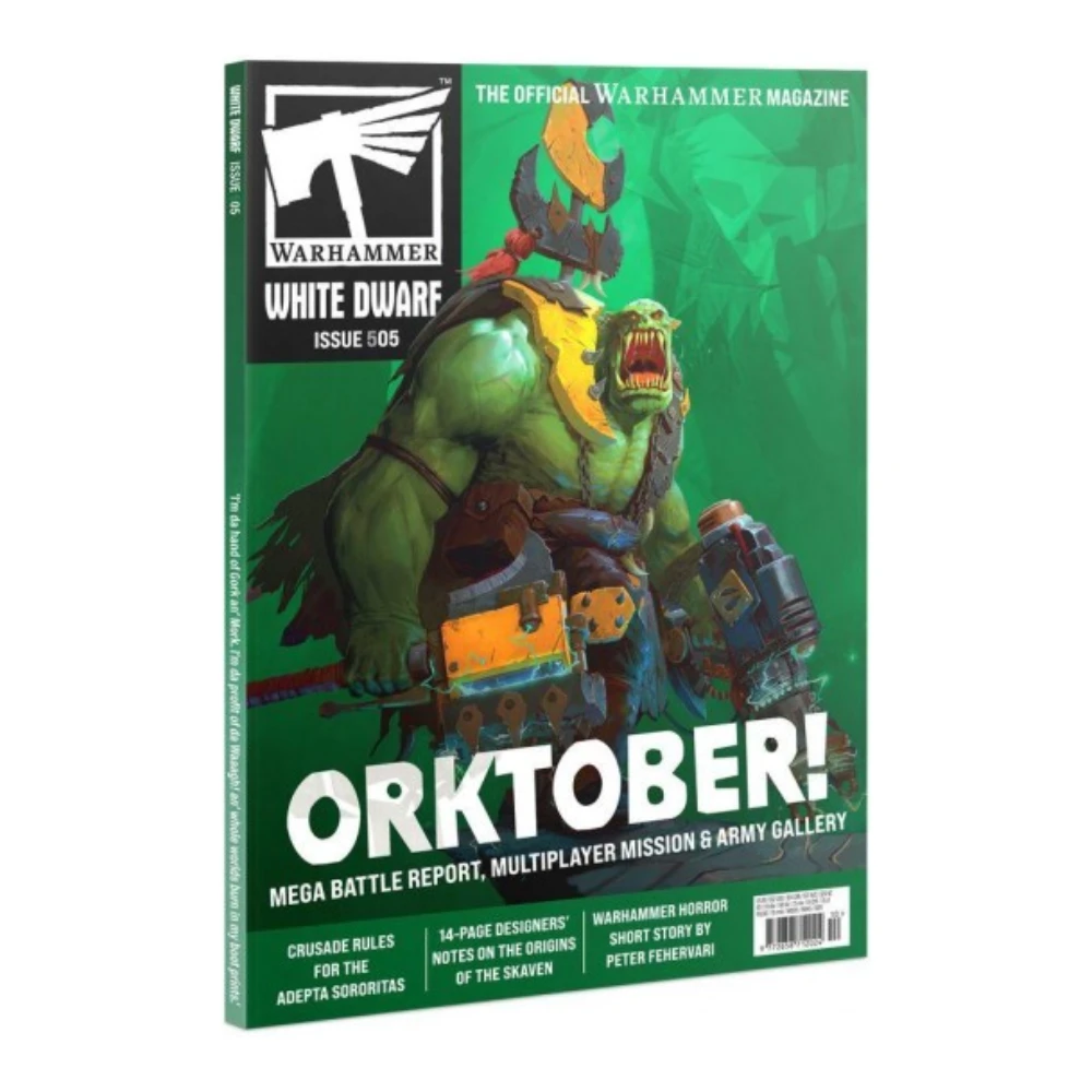En este número de la revista oficial de Warhammer encontrarás contenido variado para Warhammer 40,000, Age of Sigmar y otros sistemas del hobby. En la sección de Warhammer 40,000 destaca la campaña War Zone Chalnath: Sacred Silver y nuevas reglas de Cruzada para las Adepta Sororitas. En Age of Sigmar concluye la campaña Flashpoint Moulderhunt con una batalla final y un extenso reportaje sobre los Skaven. También incluye misiones especiales para otros juegos del universo Warhammer y un especial temático dedicado a los Orkos para celebrar el “Orktober”.