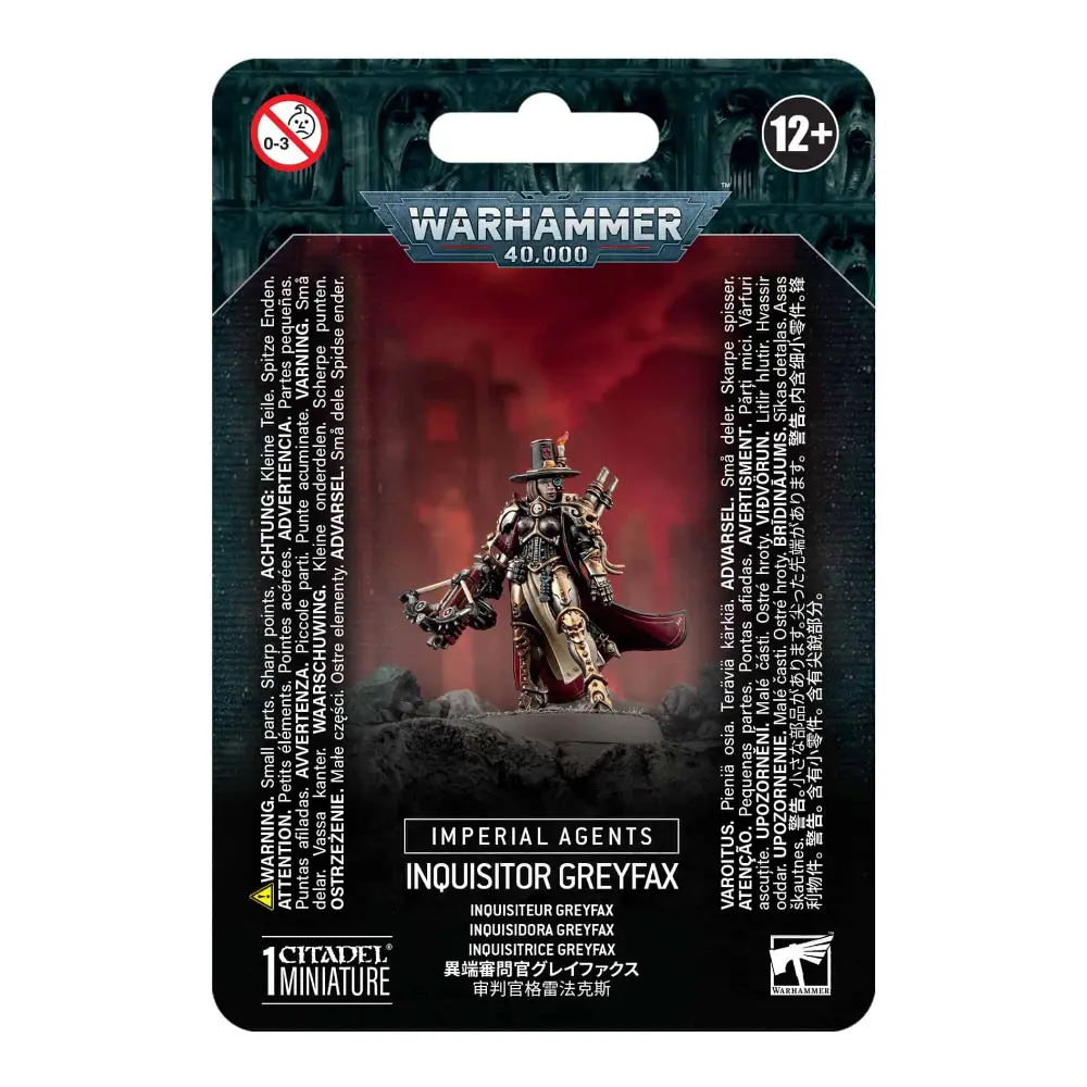 Warhammer 40,000 Inquisidor Greyfax representa a una de las figuras más icónicas del Ordo Hereticus. Armada con su pistola Condemnor y su espada de energía, combina una fe inquebrantable con habilidades tácticas excepcionales para erradicar la corrupción y la brujería donde quiera que aparezcan.